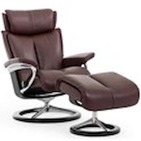 Stressless Magic 1143315 Large Reclining Chair And Ottoman With Signature Base Dunk Bright Furniture Reclining Chair Ottoman Sets
